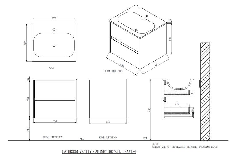 Vanitory 60cm con bacha white